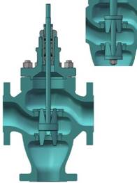 切断阀是由气动薄膜执行机构与阀本体两部分组成,中间用三根立柱或支架相连成。切断阀有三种形式:单座(P)、套筒(M)与三通(N),其结构与原理见下图。