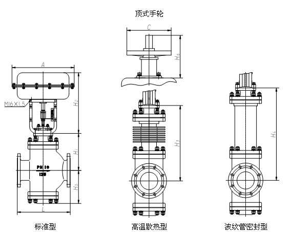 注 1)表中重量为PN16数据,也可安装侧装式手轮。