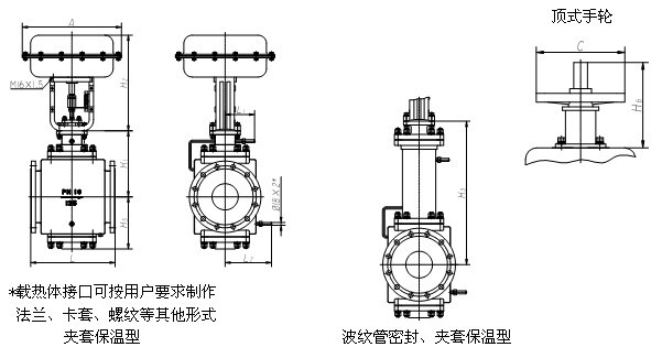 ZXNJ型调节阀带有保温夹套,用于流体冷却后易结晶、凝固造成堵塞的场合。